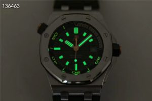 對于此次腕表的表帶很為舒適,橡膠表帶很為飽滿,表殼鏈接表帶的頭粒部分,也是最難部分,不惜破壞原裝頭粒窺探內(nèi)部結(jié)構(gòu)來復刻出同等結(jié)構(gòu),達到一鍵拆出,一頂安裝而不拖泥帶水的效果。表扣也是愛彼第一個推出的快拆表扣,讓你更換表帶和更換長扣更便捷,滿足你不同的需求。IP廠也是多次開模達到表扣拆出裝入不緊不松的原裝效果。最人性化的活動頭粒緩沖,確保吻合正品,這也是IP廠花了很多心思達成,在快拆的基礎(chǔ)上做到活動緩沖效果,對于表帶細節(jié)方面的打磨處理很為完美!