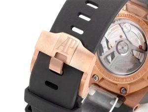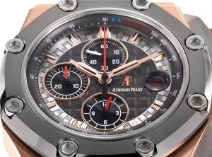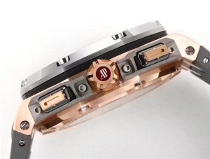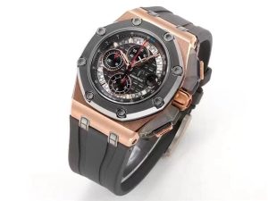 你好歡迎來到我們一比一名表復刻,小編今天給大家推薦JJF工廠復刻表,JJF工廠復刻表邁克爾·舒馬赫皇家橡樹離岸型怎么樣!邁克爾·舒馬赫皇家橡樹離岸計時手表直徑44毫米,材料分為鉑金、玫瑰金和鈦金屬三類。厚度為14.43毫米,黑色橡膠表帶和凹槽裝飾使整個手表更具極限運動風格。