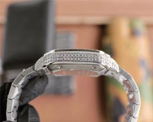 你好,歡迎來到我們一比一名表復刻,小編今天給大家推薦一個復刻得相當不錯的腕表卡地亞山度士滿天星!整個表圈都鑲嵌著方形的石頭,所有字面上的鉆石顏色都可以隨意匹配和交換。最特別的是,T型鑲嵌圈非常困難。這臺機器非常復雜,采用了最先進、最頂級的鑲嵌技術。大型工廠的工藝細節(jié)和鉆石鑲嵌效果質量一流,以實物為準。