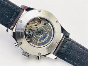 ?表盤有黑色和藍(lán)色,3點(diǎn)位為計(jì)時(shí)盤、9點(diǎn)位為小秒盤,中央大秒為計(jì)時(shí)大秒針。表盤上6點(diǎn)位標(biāo)注了“FIyback”飛返功能,是非常便捷的計(jì)時(shí)碼表。