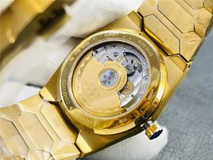 7??表殼背面透明設(shè)計,可以欣賞到精美的機(jī)芯運(yùn)行。搭配藍(lán)寶石水晶表鏡,使整個表面更加清晰明亮。