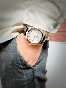 表帶的選擇更是這款腕表的一大亮點(diǎn)。黑色的表帶與白色的表盤(pán)形成了鮮明的對(duì)比,視覺(jué)效果十分突出。表帶材質(zhì)看起來(lái)柔軟且有質(zhì)感,推測(cè)應(yīng)該是皮質(zhì)的,佩戴在手腕上一定十分舒適,而且皮質(zhì)表帶隨著時(shí)間的推移會(huì)產(chǎn)生獨(dú)特的光澤和紋理,更能體現(xiàn)出佩戴者的品味。