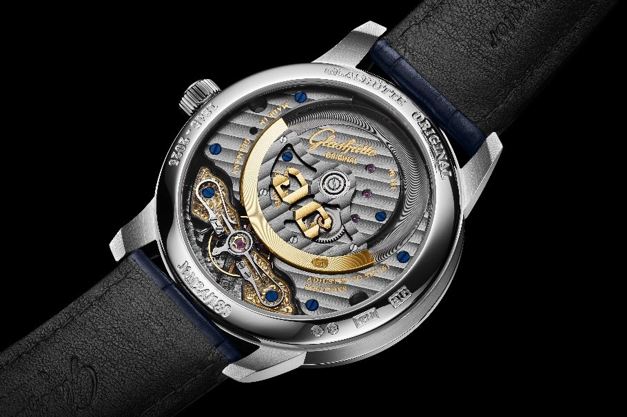 該紀(jì)念款搭載格拉蘇蒂原創(chuàng)最新一代自制Calibre 92型自動上鏈機(jī)芯,透過透明藍(lán)寶石水晶玻璃表背,電鍍灰色四分之三夾板上的格拉蘇蒂柱狀紋、細(xì)膩邊緣倒角及其他傳統(tǒng)裝飾工藝一目了然。更值得稱道的是,每一枚限量版時計,均由品牌自有工坊的制表大師全程手工完成組裝、打磨與調(diào)校,讓每一處細(xì)節(jié)都承載著純粹的德式匠心。