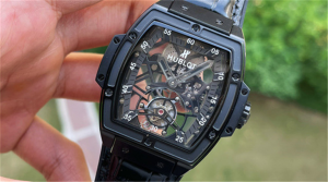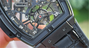近距離觀察宇舶906陀飛輪腕表的表盤細(xì)節(jié),可以看到黃色條形刻度設(shè)計(jì)給人以強(qiáng)烈的沖擊,在陽光下非常耀眼。這款腕表的另一個特點(diǎn)是表盤設(shè)計(jì)的機(jī)械感,獨(dú)特而時尚新穎。表盤上有雙時標(biāo)和分標(biāo),劍形的時針和分針中間也是鏤空的,并填充了醒目的黃色材料,讓人更容易看清時間。位于六點(diǎn)鐘位置的陀飛輪是該表的核心,是真正的陀飛輪機(jī)芯,而不是裝飾品。我曾教過你如何通過觀察擒縱機(jī)構(gòu)是否一起工作來區(qū)分真正的陀飛輪和假的。如果是那種左右搖擺的,那就是假陀飛輪。陀飛輪可以說是讓所有人著迷的功效,盯著它看就像一個視覺漩渦,非常吸引人。