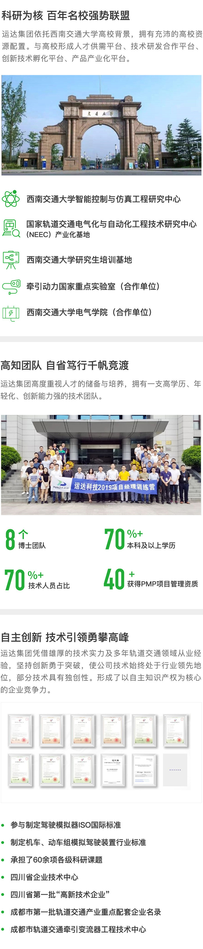 成都運達科技股份有限公司(簡稱“運達科技”)起源于1992年創立的西南交通大學校辦企業,于2015年4月登陸深圳證券交易所上市(股票代碼:300440)。公司秉承“讓交通更安全高效”的使命,致力于為軌道交通業務領域提供智能解決方案及服務,是國內領先的少數擁有核心自主知識產權和生產能力的高科技企業之一。公司目前約有千余名員工,業務遍及十余個國家和地區。