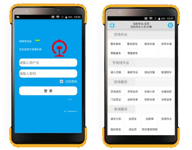 鐵路貨運手持機是貨運課題組根據貨運站定制的專用手持移動終端,可與《貨運站安全監控與管理系統》進行信息交互。系統集成了RFID模組、二維碼模組、語音對講功能、手持機管理平臺等。 貨運手持機通過4G網絡(安全認證)接收貨運站系統下發的作業計劃進行作業,對作業過程和問題車進行拍照、錄像等影像資料上傳到貨運站系統,實現移動辦公。